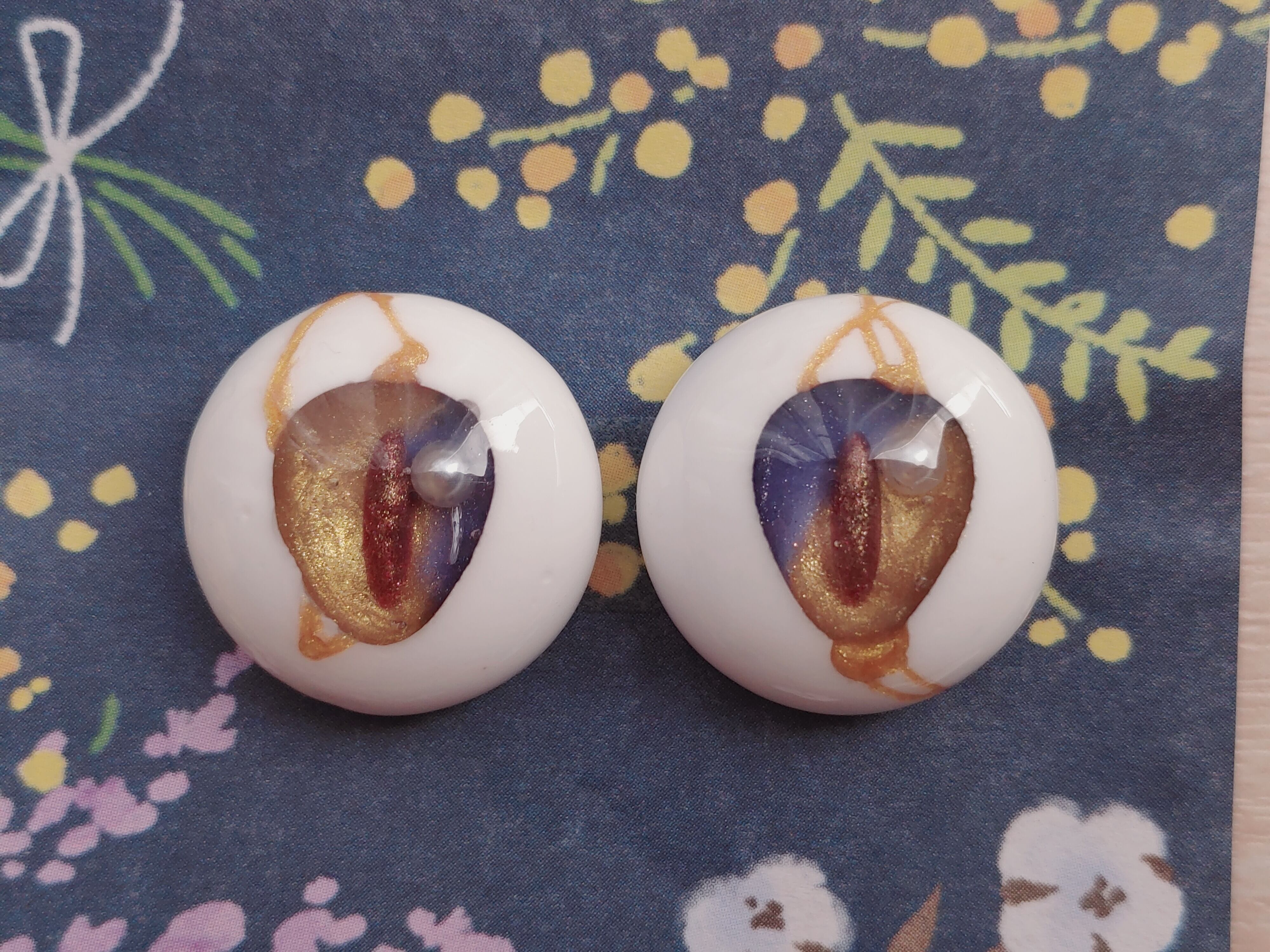 こちら20㎜のブルーとゴールドカラーを使った石膏製、ドール用アイです!