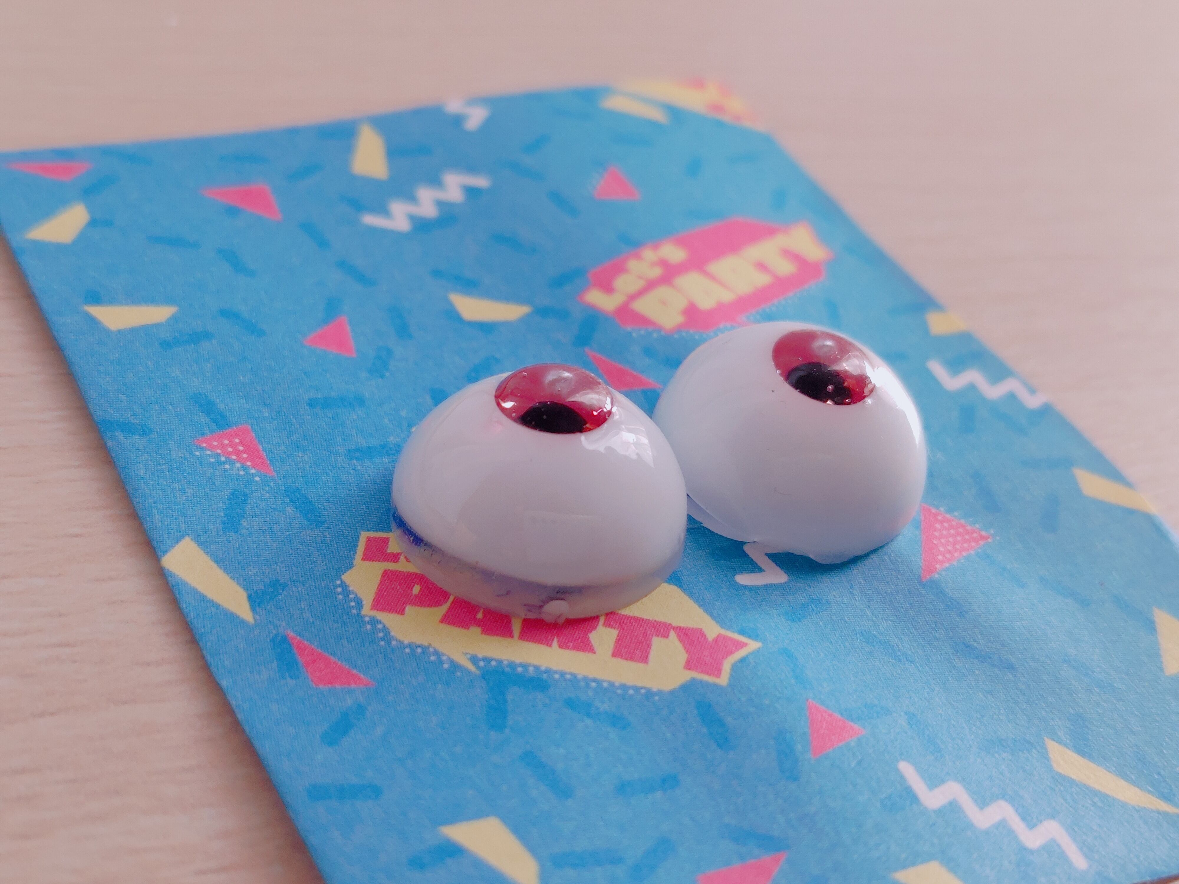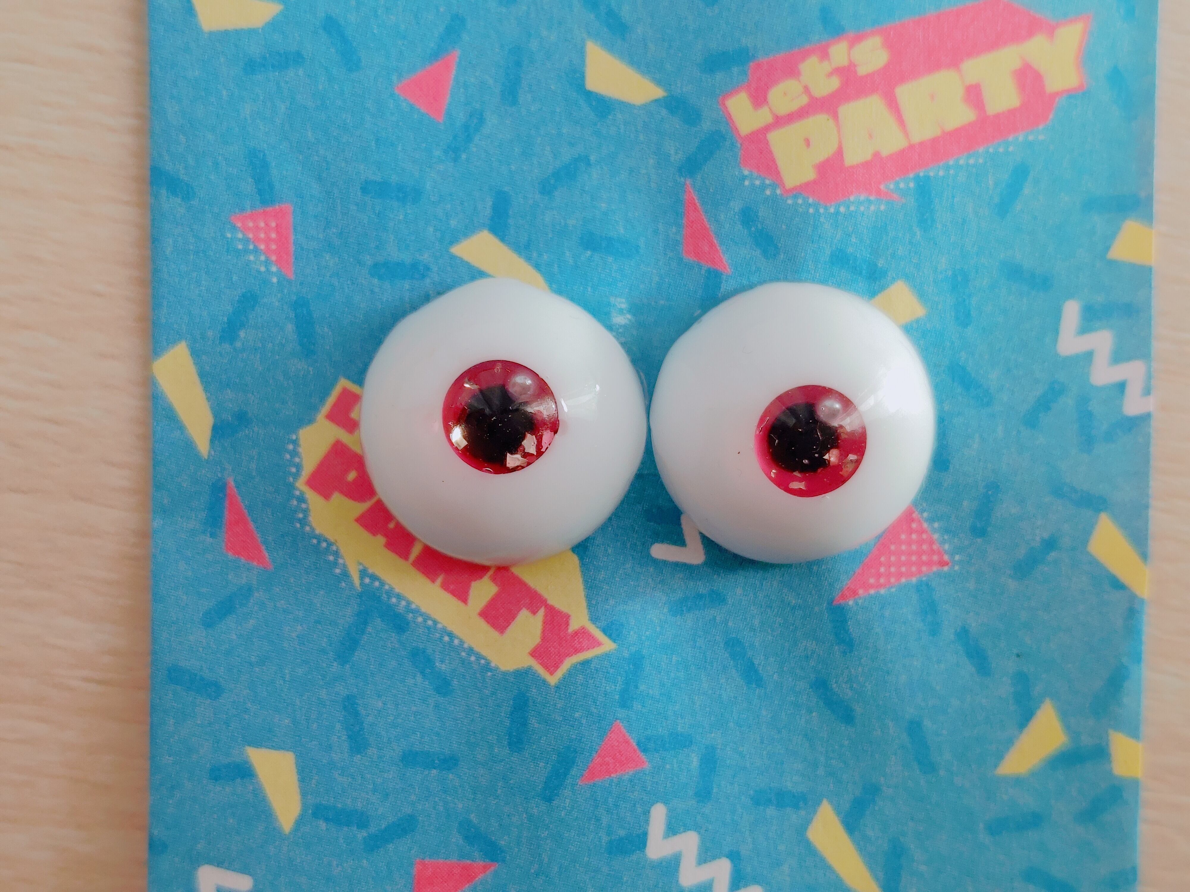 こちら16㎜の濃いめのピンクを使った小虹彩のドール用アイです!